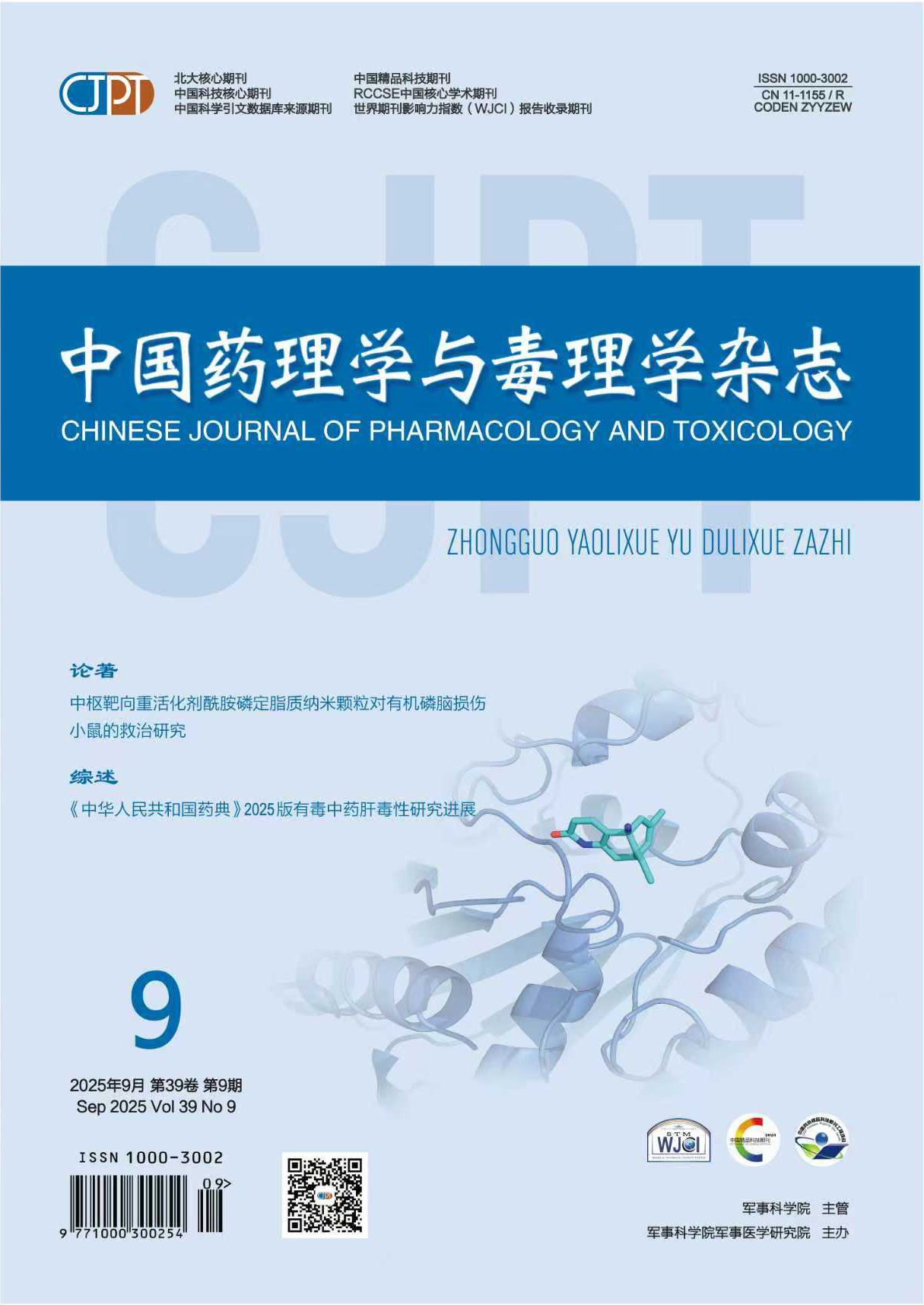 目的 构建新型中枢神经系统靶向的脂质纳米颗粒,并探讨其对有机磷脑损伤小鼠的救治作用。方法 (1)脂质纳米颗粒制备、筛选与表征:① 用薄膜分散法制备以不同摩尔比(1∶6∶3、3∶4∶3、5∶2∶3和7∶0∶3)1-棕榈酰基-2-油酰基-sn-磷脂酰丝氨酸(POPS)、二棕榈酰磷脂酰胆碱(DPPC)和胆固醇(CHOL)的混合物(PDC)为脂质载体,酰胺磷定(HI-6)为治疗药物的脂质纳米重活化剂(HI-6@PDC 1∶6∶3、3∶4∶3、5∶2∶3和7∶0∶3)。② 用荧光素钠(FLU)染料标记脂质纳米载体得到FLU@PDC 1∶6∶3、3∶4∶3、5∶2∶3和7∶0∶3,并将各制剂与磷脂酶A2(PLA2)溶液物理混合(PLA2终浓度10 kU·L-1)得到FLU@PDC+PLA2;将KM雄性小鼠随机分为正常对照组、FLU组、FLU@PDC+PLA2 1∶6∶3、3∶4∶3、5∶2∶3和7∶0∶3组,每组7只,iv给药,FLU给药剂量为1 mg·kg-1,相应载体量为80 mg·kg-1,1 h后,取脑组织,匀浆离心,采用荧光分光光度法测定上清液的荧光值,筛选中枢靶向效果最佳的纳米脂质载体组成。③ 用透射电子显微镜表征HI-6@PDC 5∶2∶3的形态,Zeta电位粒径分析仪测定其粒径、多分散性指数和Zeta电位,超滤离心法结合高效液相色谱法测定其包封率与载药量,采用透析袋扩散法结合荧光分光光度法测定HI-6@PDC 5∶2∶3和HI-6@PDC+PLA2 5∶2∶3的体外释放率。(2)中枢靶向性验证:① 用花青素7(Cy7)标记PDC 5∶2∶3得到Cy7@PDC 5∶2∶3,将其与PLA2溶液物理混合(PLA2终浓度10 kU·L-1)得到Cy7@PDC+PLA2 5∶2∶3;将KM雄性小鼠随机分为正常对照组、Cy7组、Cy7@PDC 5∶2∶3组和Cy7@PDC+PLA2 5∶2∶3组,每组3只,iv给药,Cy7给药剂量为1 mg·kg-1,相应载体量为80 mg·kg-1,3 h后,用小动物活体成像系统观察脑组织中Cy7的荧光。② 花青素3(Cy3)标记PDC 5∶2∶3得到Cy3@PDC 5∶2∶3,将其与PLA2溶液物理混合(PLA2终浓度10 kU·L-1)得到Cy3@PDC+PLA2 5∶2∶3;将KM雄性小鼠随机分为Cy3@PDC 5∶2∶3组和Cy3@PDC+PLA2 5∶2∶3组,每组3只,iv给药,Cy3给药剂量为1 mg·kg-1,相应载体量为80 mg·kg-1,2 h后,取脑组织进行荧光染色并观察Cy3荧光。(3)救治效果验证:① KM雄性小鼠随机分为正常对照组、脑损伤组、HI-6治疗组和HI-6@PDC+PLA2 5∶2∶3治疗组,每组6只。除正常对照组外,所有小鼠颈部sc给予梭曼(soman)120 μg·kg-1;随后立即iv给药,HI-6给药剂量为22 mg·kg-1,相应载体量为80 mg·kg-1。10 min后,摘眼球取血,取脑组织并记录重量,采用Ellman法测定小鼠血液与脑组织乙酰胆碱酯酶的重活化率;② 分组和处理同①,每组3只。24 h后,取脑组织,经HE染色后,观察小鼠脑组织损伤情况;③ KM雄性小鼠随机分为脑损伤组和HI-6@PDC+PLA2 5∶2∶3治疗组,每组10只,梭曼剂量为220 μg·kg-1,其他处理同①。观察并记录各组小鼠死亡情况,绘制生存曲线;观察并记录各组小鼠的肌颤、流涎等神经中毒症状与惊厥潜伏期。结果 (1)当PDC 5∶2∶3时,小鼠脑组织匀浆上清液中的荧光值最高,药物靶向进入中枢的效果最好。HI-6@PDC 5∶2∶3呈规则球形,带负电,粒径为(219.4±3.1)nm、多分散指数为0.4±0.02;包封率为72.9%,载药量为49.7%;HI-6@PDC+PLA2 5∶2∶3在60 min时的累积释放率为43.5%,虽低于罗丹明B水溶液,但该释放速率经体内实验验证可有效满足中枢神经系统救治的时效性要求。(2) 活体荧光结果和病理荧光结果显示,PDC摩尔比为5∶2∶3在PLA2介导下实现了药物的中枢递送。(3)重活化实验结果表明,与HI-6相比,HI-6@PDC+PLA2 5∶2∶3可显著提高小鼠外周血与脑组织中乙酰胆碱酯酶的重活化率。HE染色结果显示,HI-6@PDC+PLA2 5∶2∶3可改善梭曼中毒引起的脑组织病理损伤;经HI-6@PDC+PLA2 5∶2∶3治疗的脑损伤小鼠生存周期显著延长,惊厥率降低,神经系统症状减轻,惊厥潜伏期延长。结论 HI-6@PDC 5∶2∶3在PLA2介导下可有效穿透血脑屏障,具有良好的中枢靶向能力,能显著提升梭曼中毒小鼠外周及中枢乙酰胆碱酯酶重活化率,对有机磷脑损伤小鼠救治作用明显。
